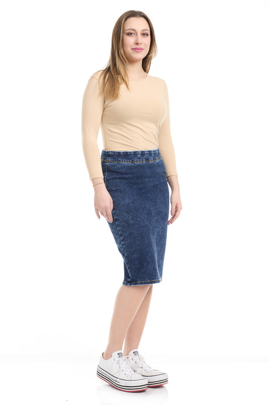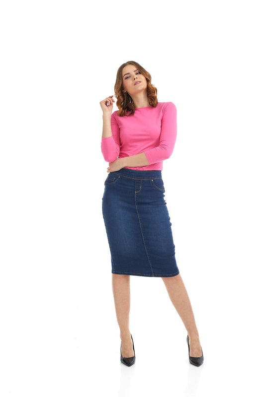 Modest Below Knee Length Jean Pencil Skirt for Women 'Venice'