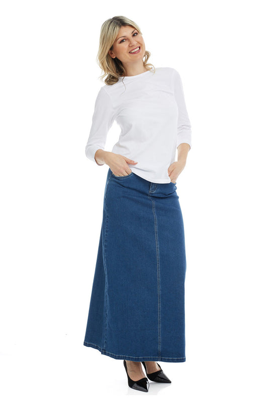 Ankle long denim maxi A-Line jean skirt 'Georgia'