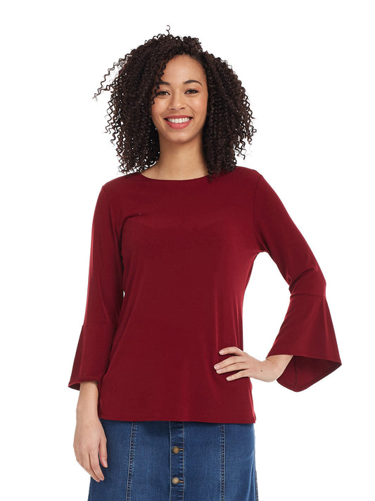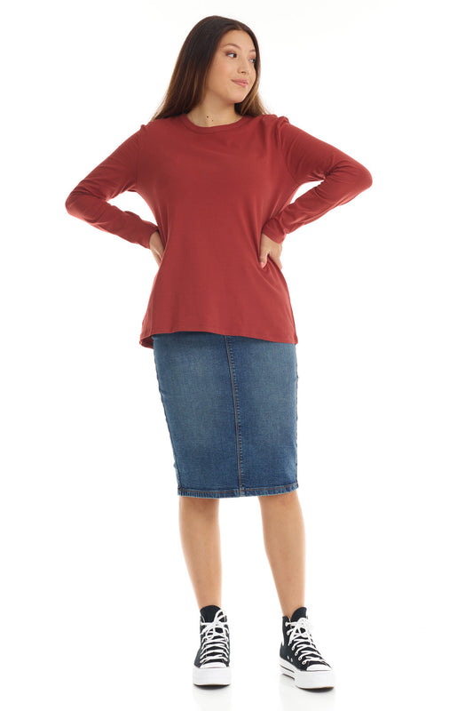 Womens Long Sleeve Cotton Top - BURGUNDY