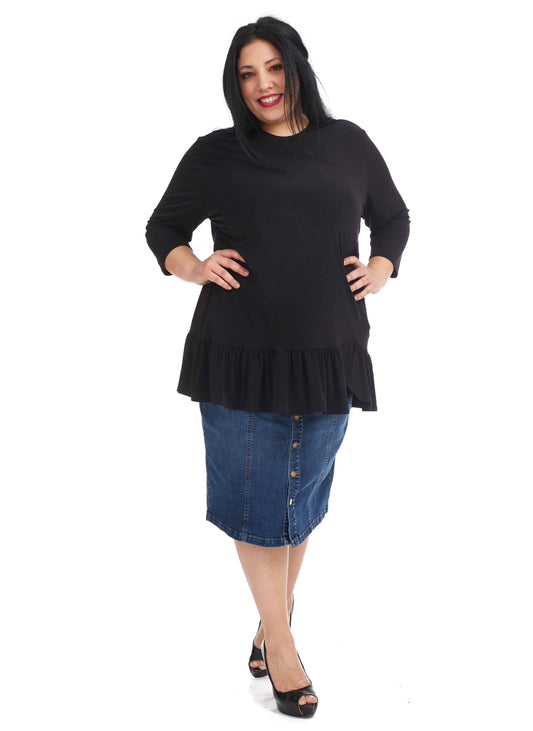 3/4 sleeve tunic top with ruffle hem 'Carnation'