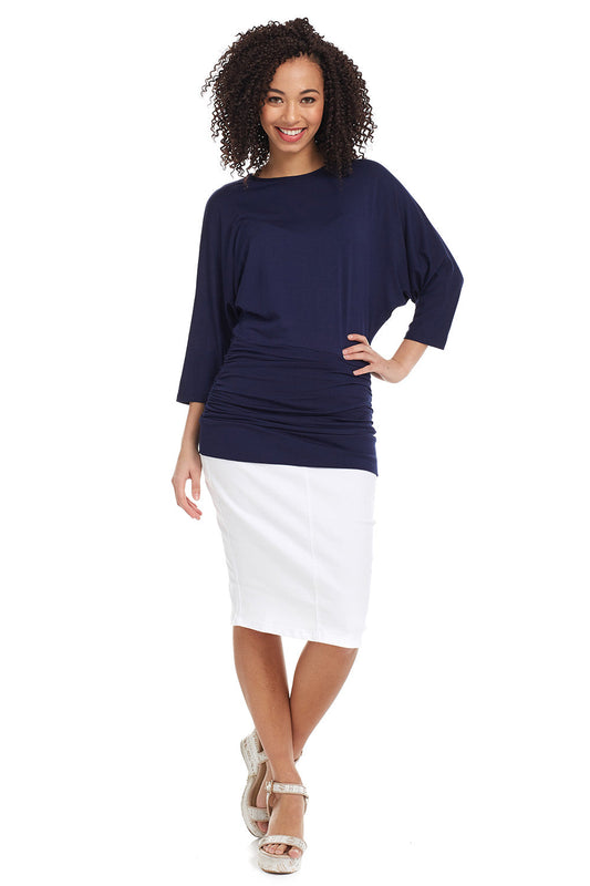 Modest 3/4 Sleeve Shirt with Ruching Neckline 'Jasmine'