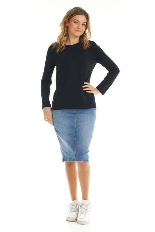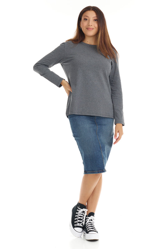 Womens Long Sleeve Cotton Top - CHARCOAL