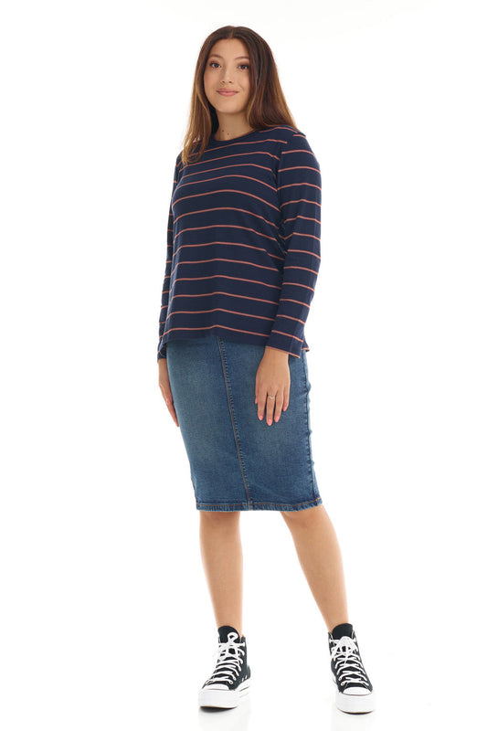 Womens Long Sleeve Cotton Top - B521 STRIPES