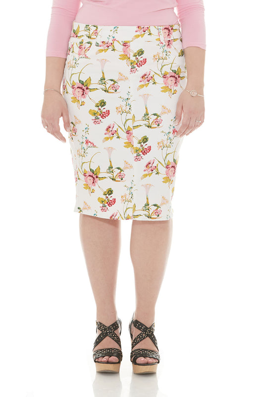 Green floral below knee length denim jean skirt 'Brooklyn'
