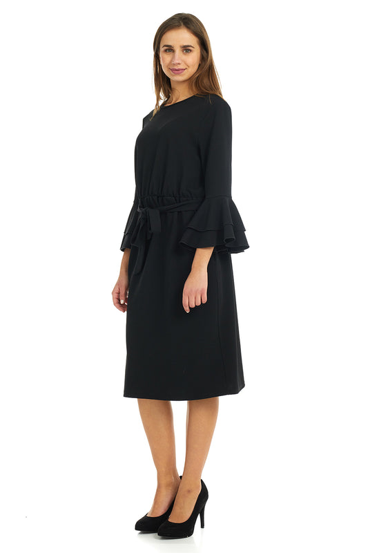 Esteez EMILEE Dress for women - Belted Empire Waist - Double Bell Sleeve - BLACK