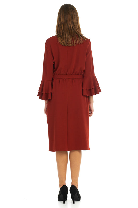 Esteez EMILEE Dress for women - Belted Empire Waist - Double Bell Sleeve - RUST